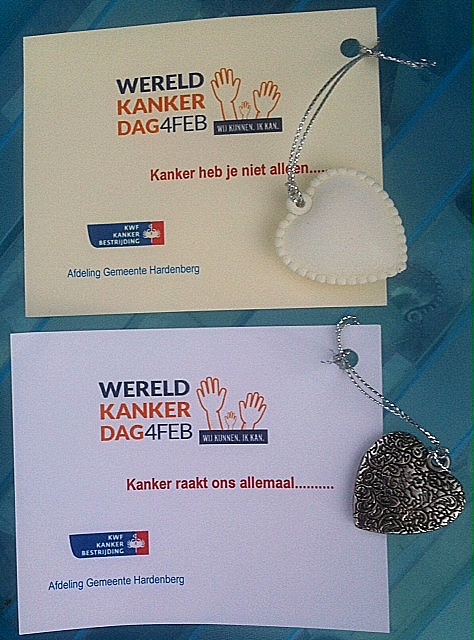 Om deze dag extra onder de aandacht te brengen hebben bestuursleden van KWF Kankerbestrijding afdeling Gemeente Hardenberg die middag hartjes uitgedeeld in het centrum van Hardenberg – in het kader van “een hart onder de riem steken”.